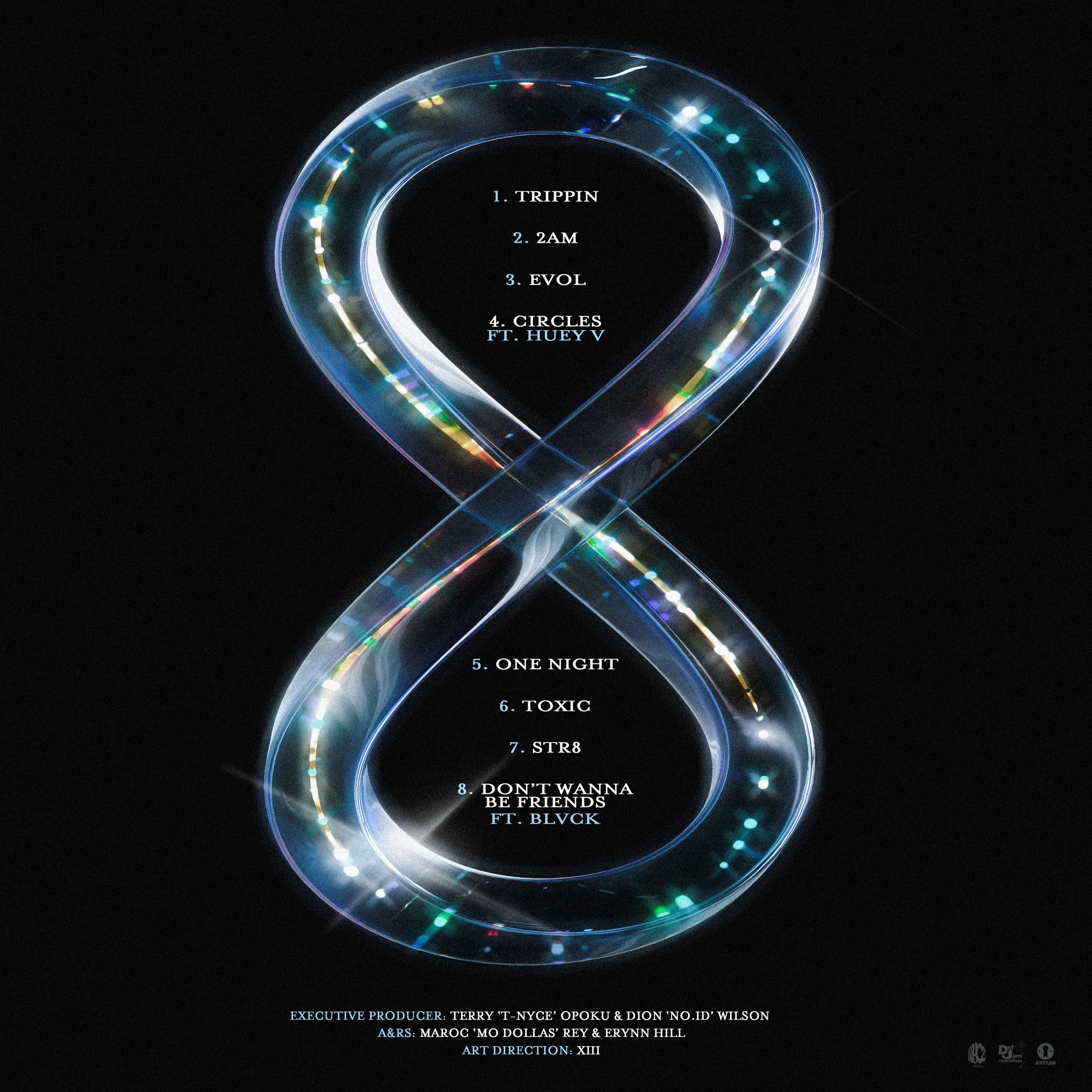 The central visual identity for 8 is built around a dimensional infinity motif, functioning as both symbolic anchor and compositional framework.